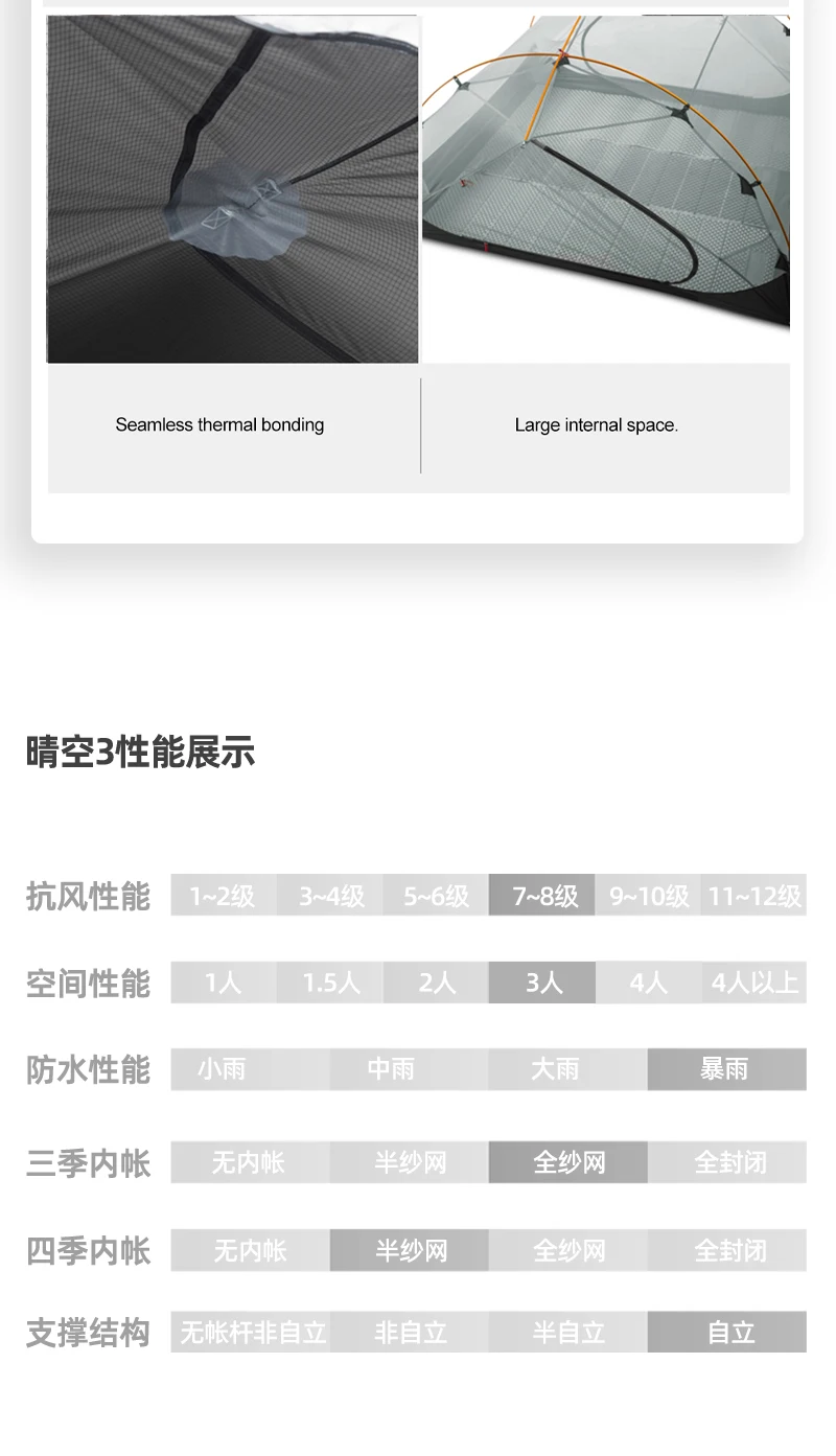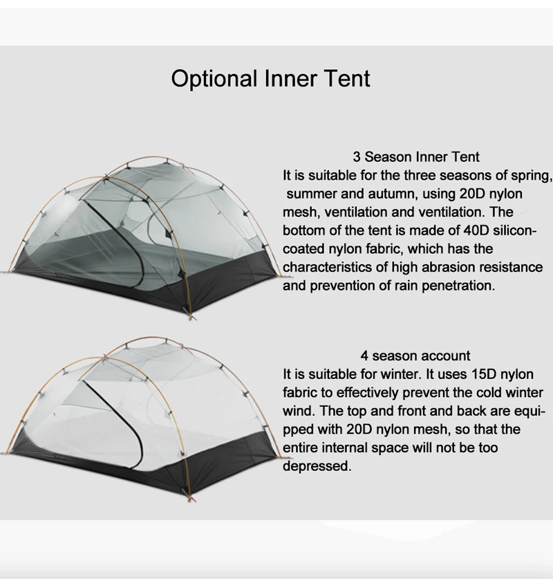 3 season: 20 D mesh / 4 season: 15 D nylon