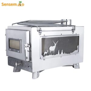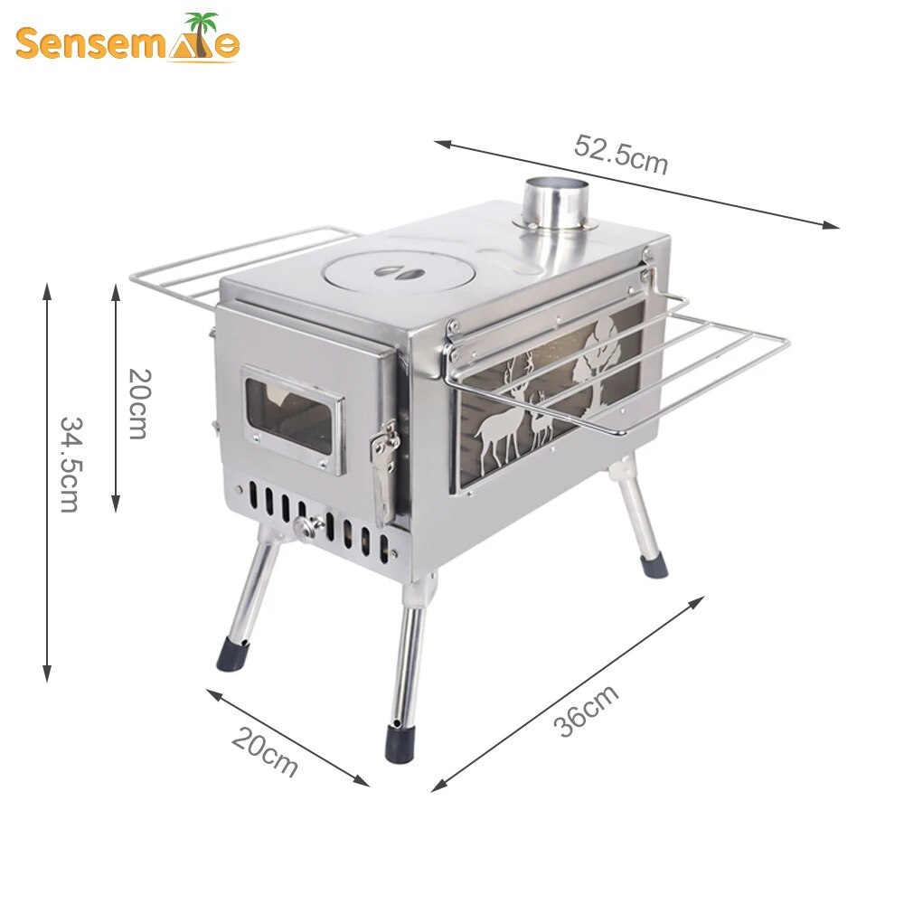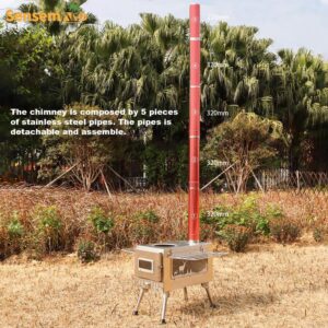 The addition of an adjustable air intake to the side of the portable wood stove allows fine-tuning of the burn rate and enables the firewood to make second circulation of burning, effectively reducing wood consumption and maximizing heat output. Firewood stove smoke pipe built-in spark suppressor to prevent sparks from popping out.