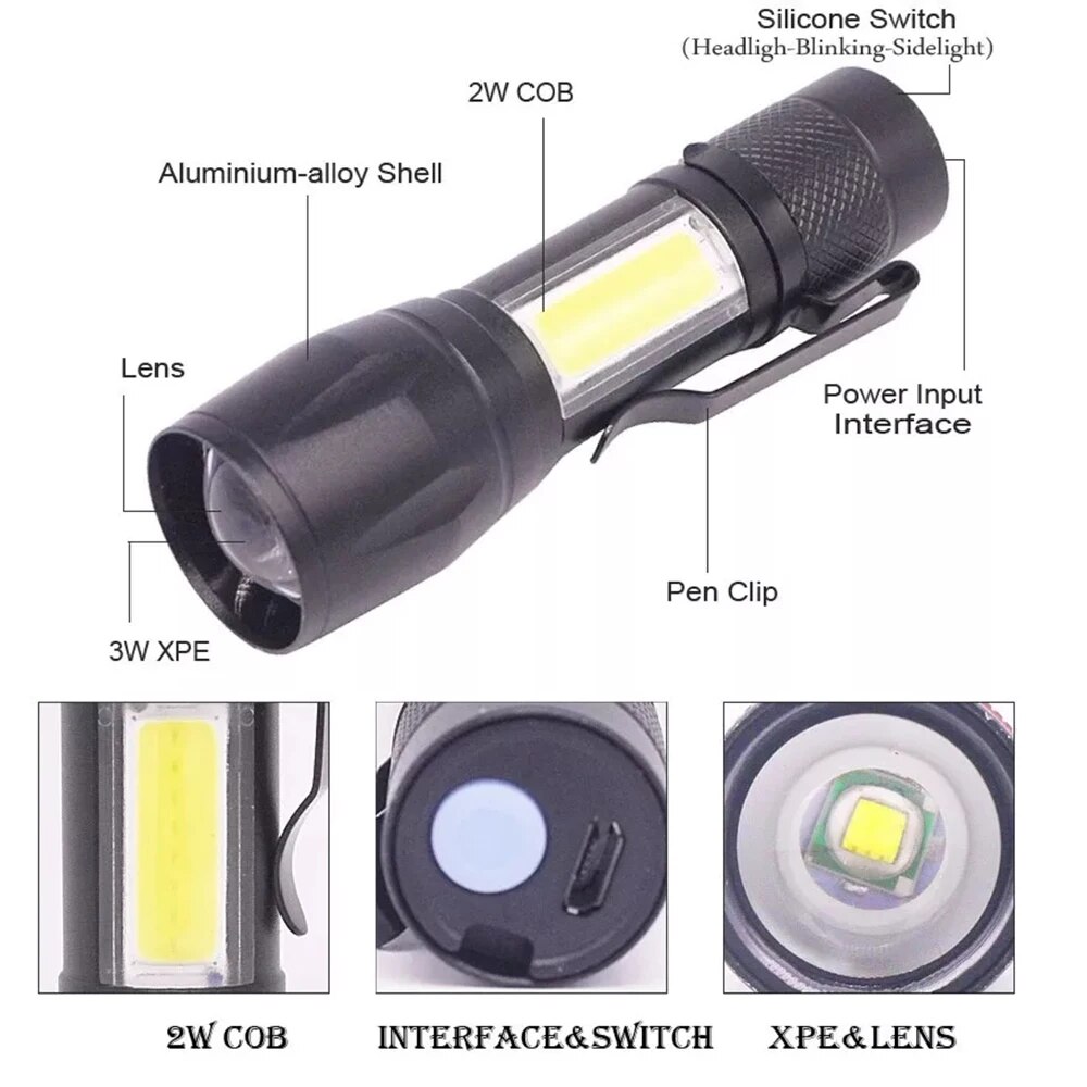 Mini Torch LED Flashlight Portable USB Charging Flashlight Outdoor Camping Strong Lamp Lantern Waterproof Tactical Flashlight