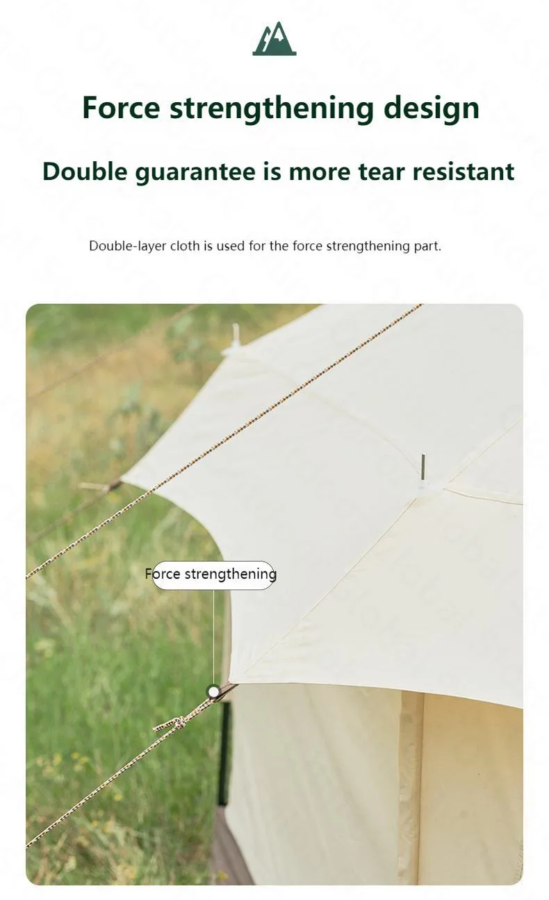 Outer Tent: Polyester Cotton (35% Cotton 65% Polyester) / PU2000Mm W/R UV50+ Anti-Mildew Treatment