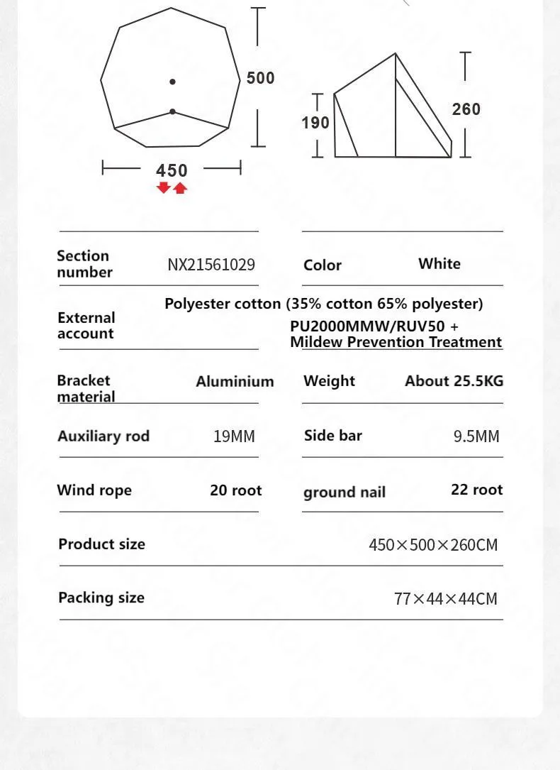 - Product List: External Tent / Ground Nail*22 / Wind Rope*20 / Waterproof Rubber Cover / Tent Pole Storage Bag / Tent Pole