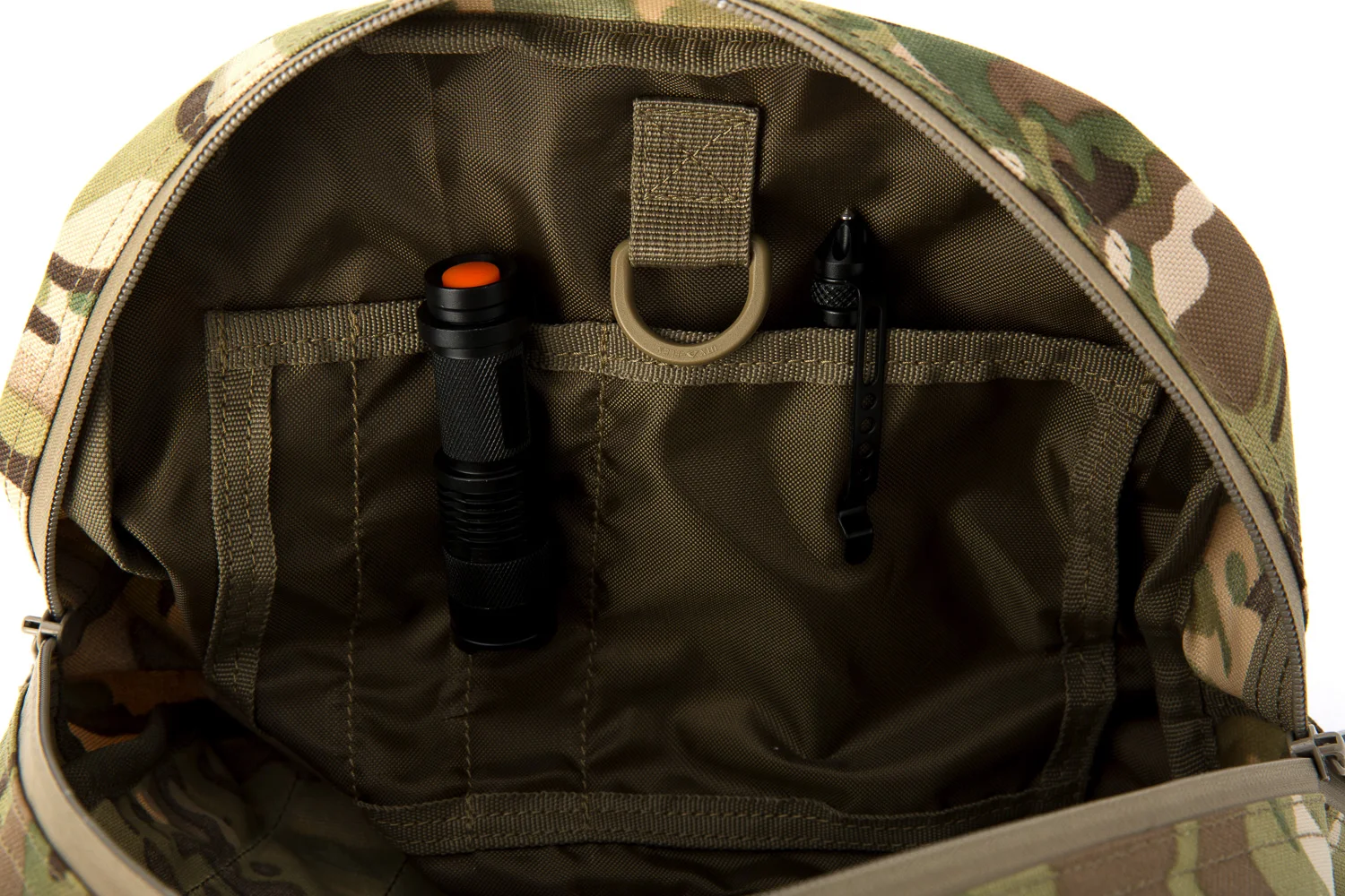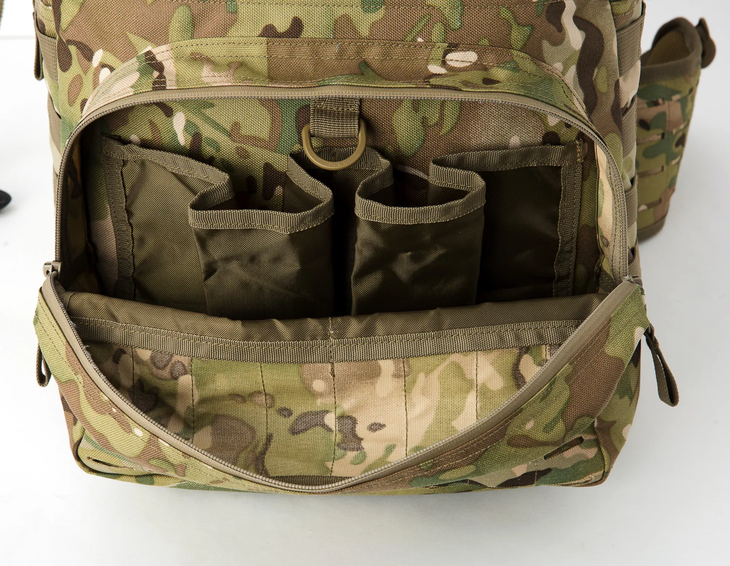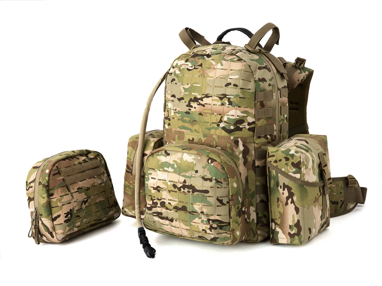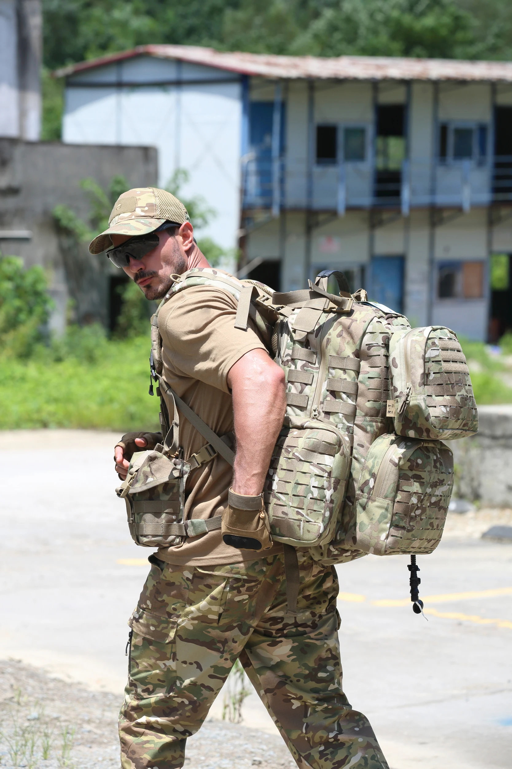 Military surplus design: Based on US army ranger MOLLE ii medium rucksack, use two layers fabric laser cutting PALS instead of webbing belt allow tactical pouches attachment. Rugged&high strength water-proof 1000D Oxford fabric, heave duty YYK zippers and original UTX buckles system are 100% adapted. Internal back board. Multicam camo mate well with army combat uniform(ACU).