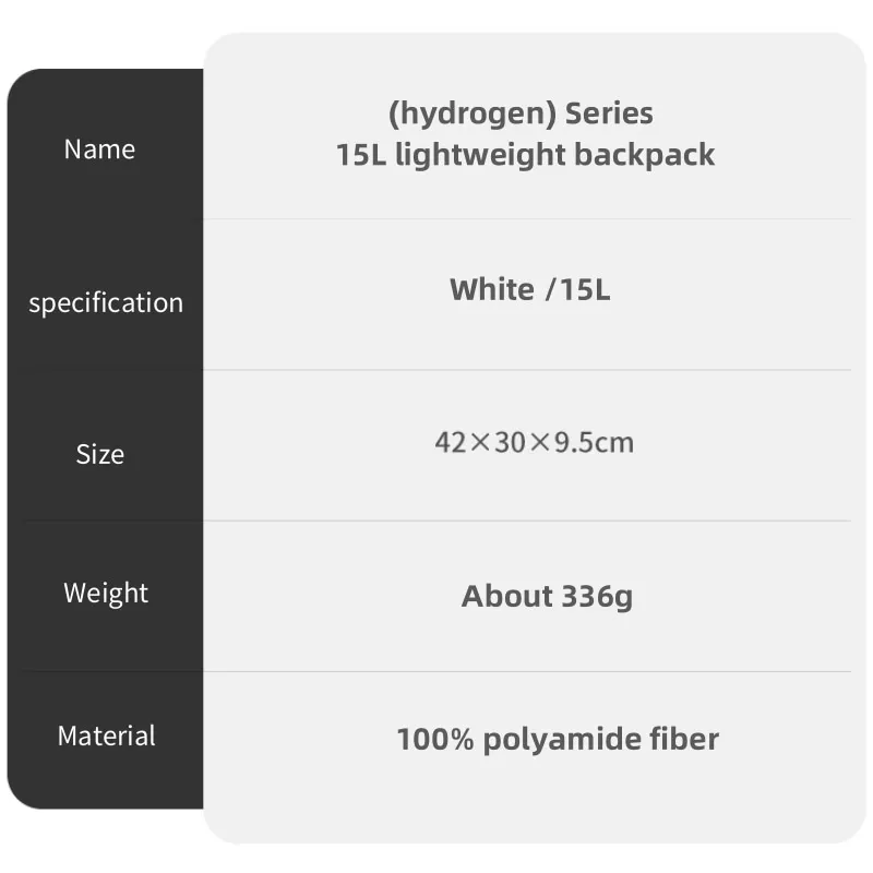 - Name: (Hydrogen) 15L Lightweight Shoulder Bag