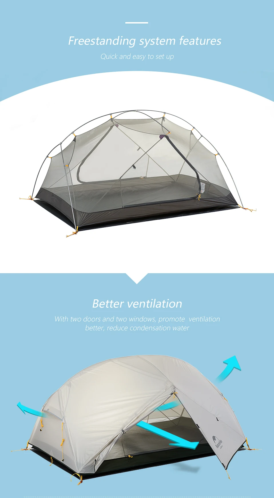 Naturehike Mongar 2 Person Camping Tent Outdoor Ultralight 20D Nylon Fabric Double Layer Camping Waterproof Travel Equipment