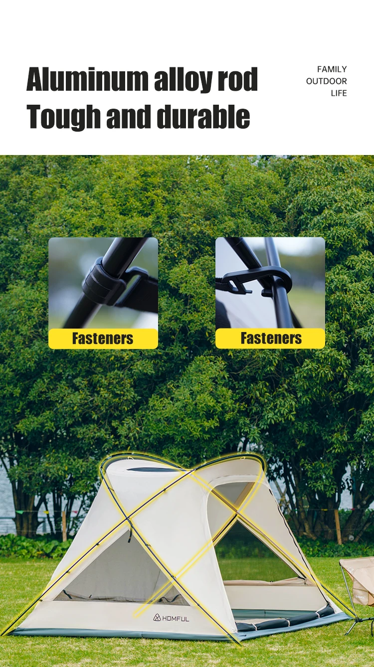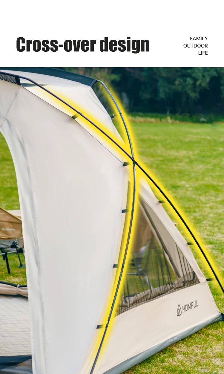 5. Reinforced skeleton, our tents are designed with a reinforced skeleton, which effectively enhances the stability and durability of the tent. Our tents provide reliable protection in adverse weather conditions such as strong winds, heavy rain and snowstorms, allowing you to enjoy the outdoors with peace of mind.