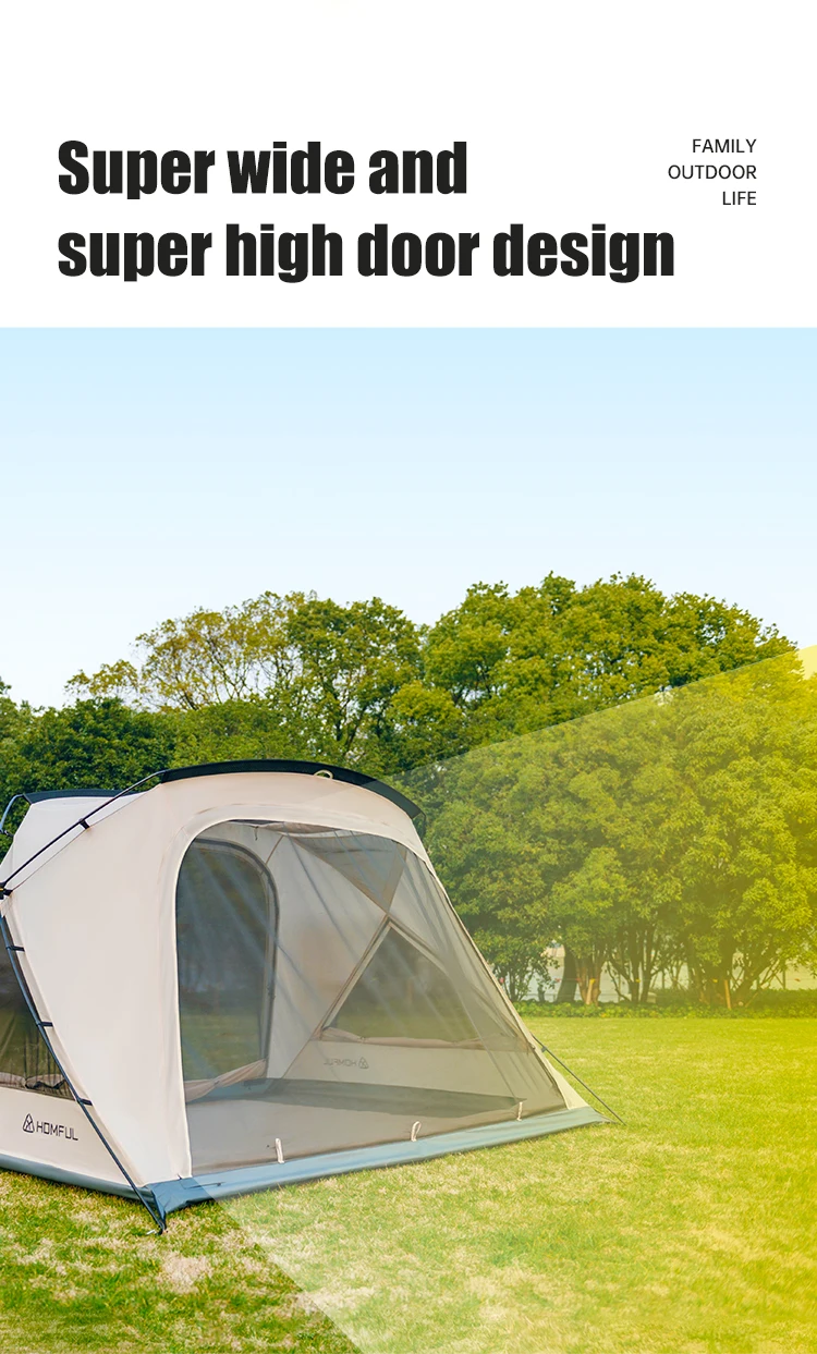 4. Multi-sided ventilation, our tents are designed with multi-sided ventilation, which can effectively keep the air circulating and let you feel the fresh air inside the tent. Whether it is a hot summer day or a cold winter day, our tents will provide you with a comfortable stay.