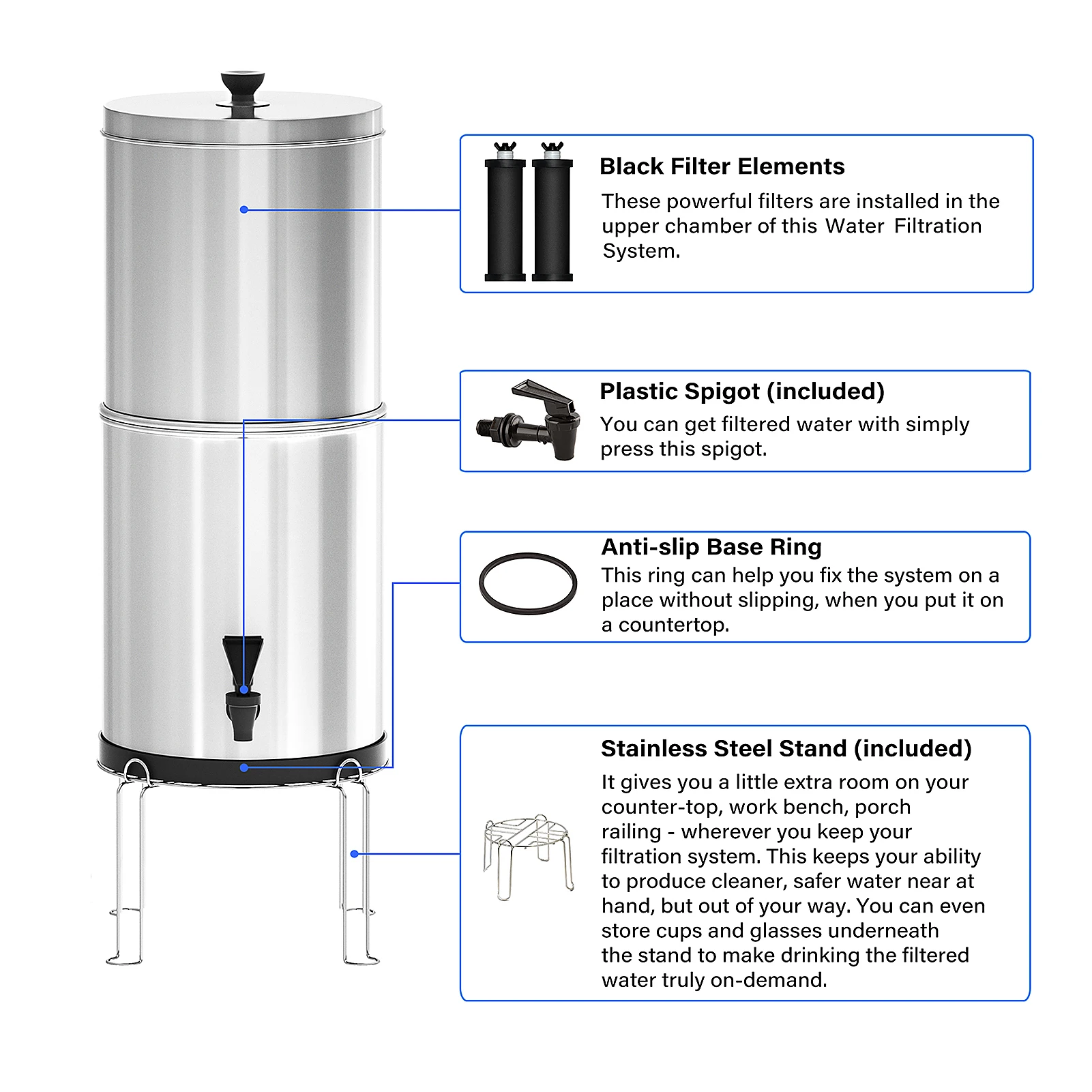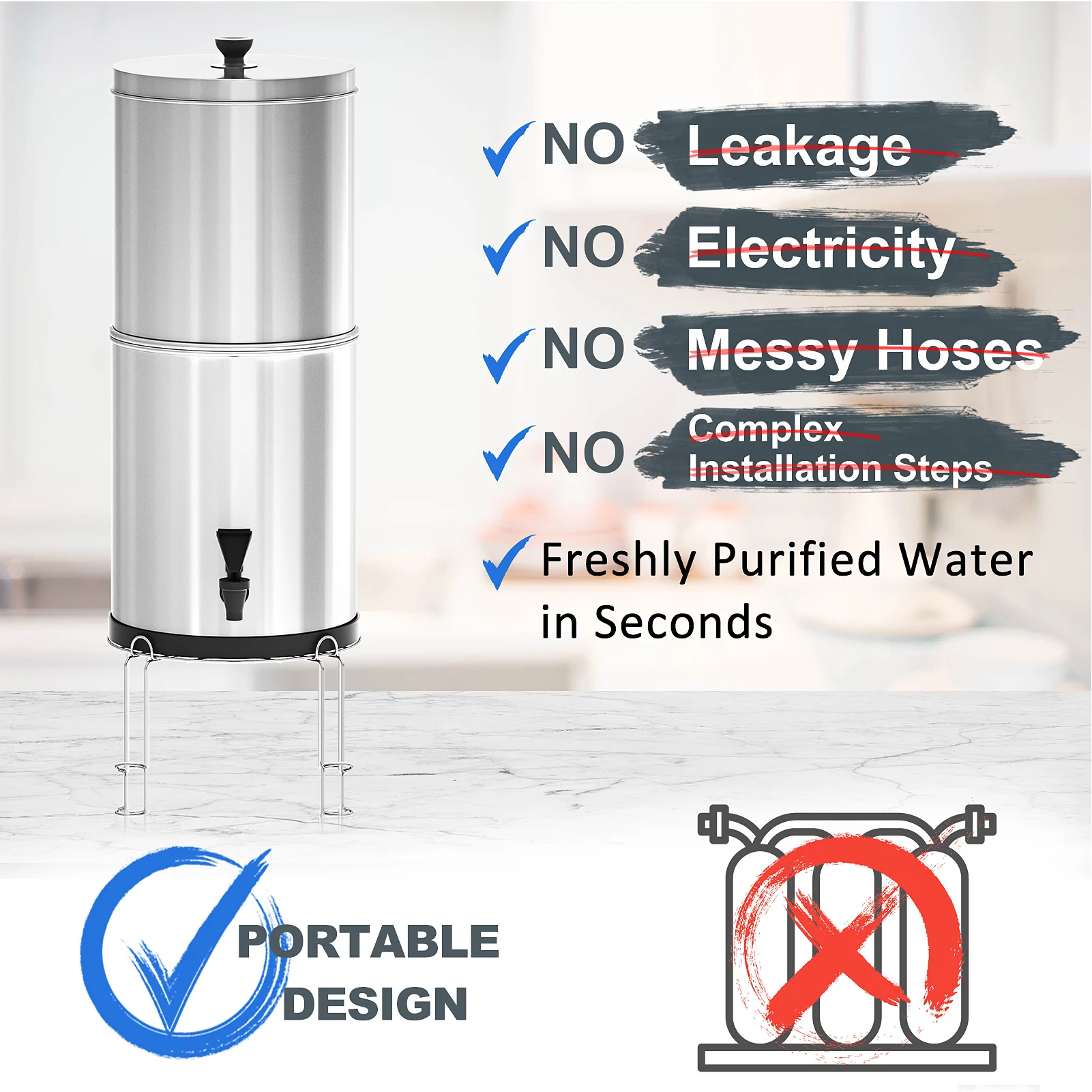 2.38 gallons large capacity, with fast flow rate up to 4 gallons per hour (with 2 filters).