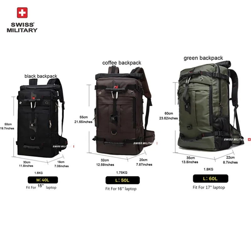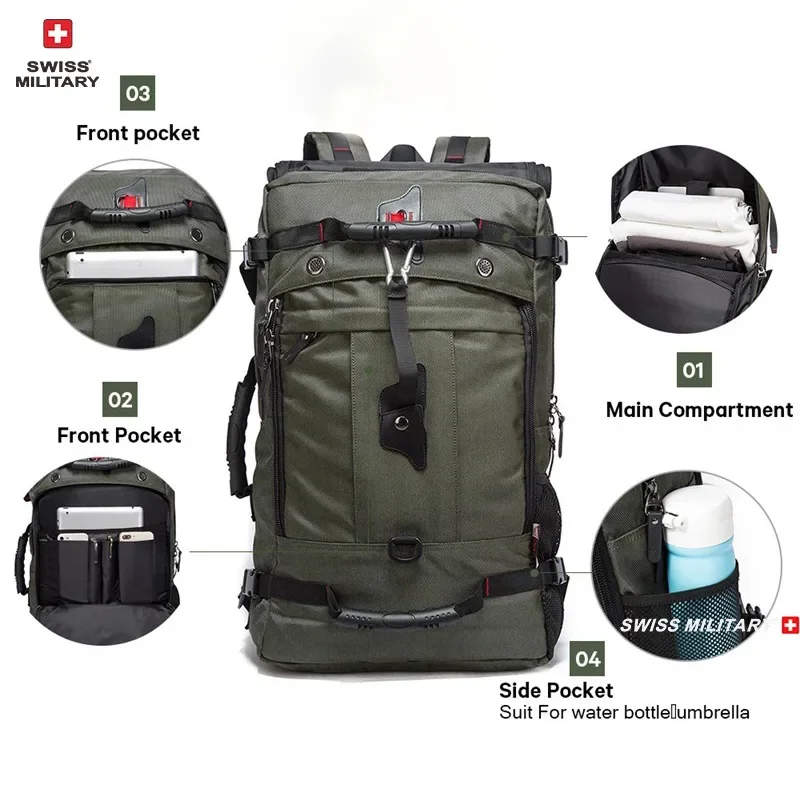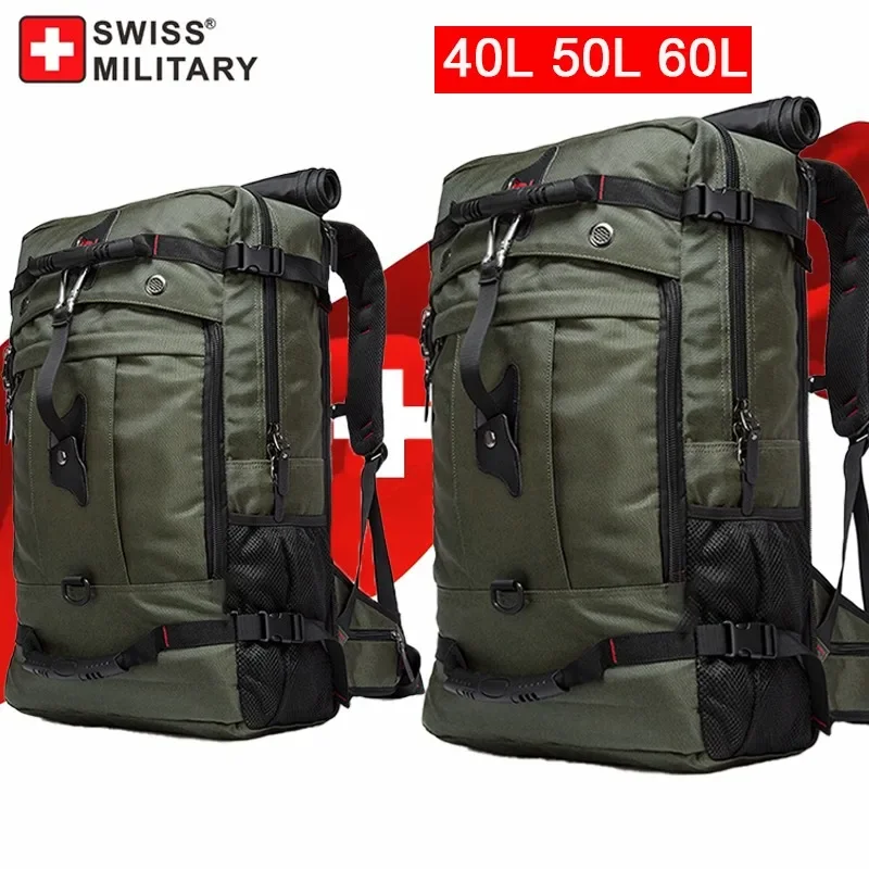 SWISS MILITARY Men Hiking Backpacks 40L/50L/60L Business Travel Backpack Outdoors Laptop Backpack Multifunctional Luggage Bag